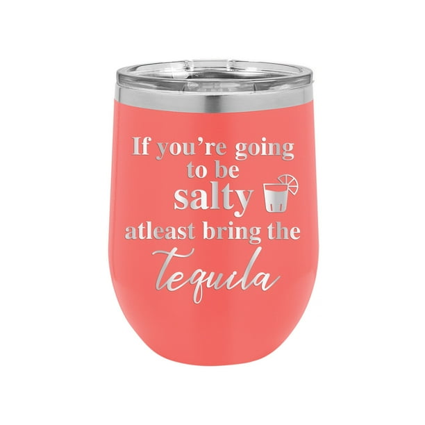 If You Re Going To Be Salty At Least Bring The Tequila Engraved 12 Oz Coral Wine Cup Unique Funny Birthday Gift Graduation Gifts For Men Or Women Probably Tequila Drinking Hilarious