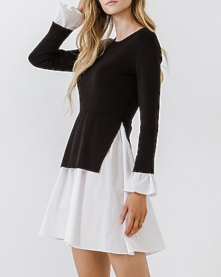 English Factory Poplin Combo Knit Mini Dress Express